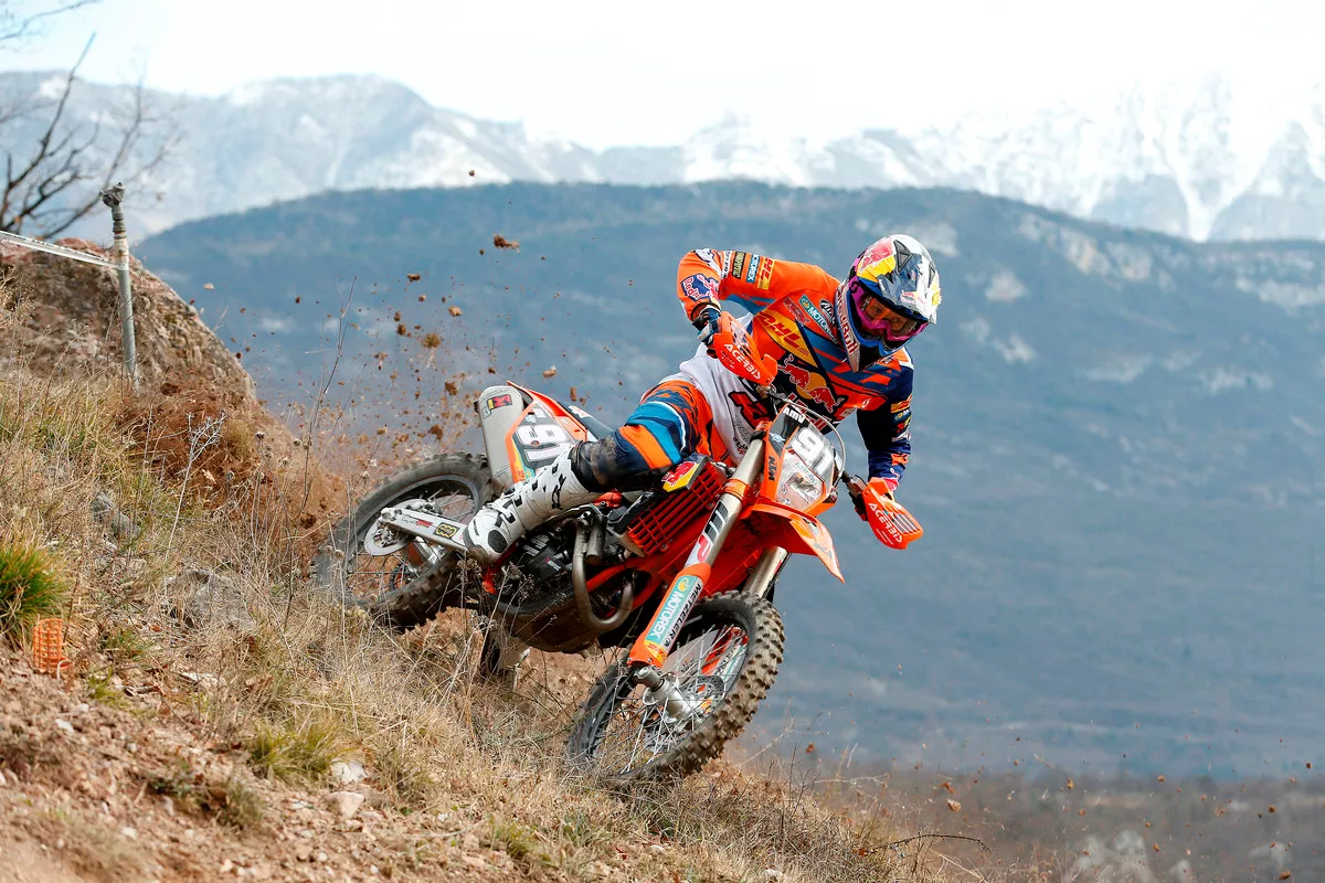 The riding experience is enhanced by multiple engine modes and traction control settings that adapt to various conditions and rider preferences. High-performance hydraulic disc brakes provide exceptional stopping power and control in all conditions. The highly acclaimed WP XPLOR suspension system offers excellent damping properties for both competitive enduro riding and casual trail riding. A large fuel tank allows for longer rides with fewer refueling stops.